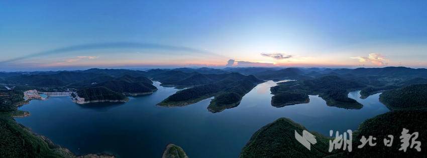 湖北日报客户端讯(通讯员黄小明)7月5日傍晚,夕阳西下万通配资,京山市八字门水库万通配资宛如梦幻之境。天空被染成橙红与金黄交织的色彩,云朵似火在燃烧。远处山脉连绵,以黑色剪影勾勒出大地的轮廓。平静水面波光粼粼,倒映着天空绚烂,水天相融,难分彼此。置身于此,仿若踏入一幅绝美的画卷之境,宁静祥和之感涌上心头,让人忘却尘世烦恼。