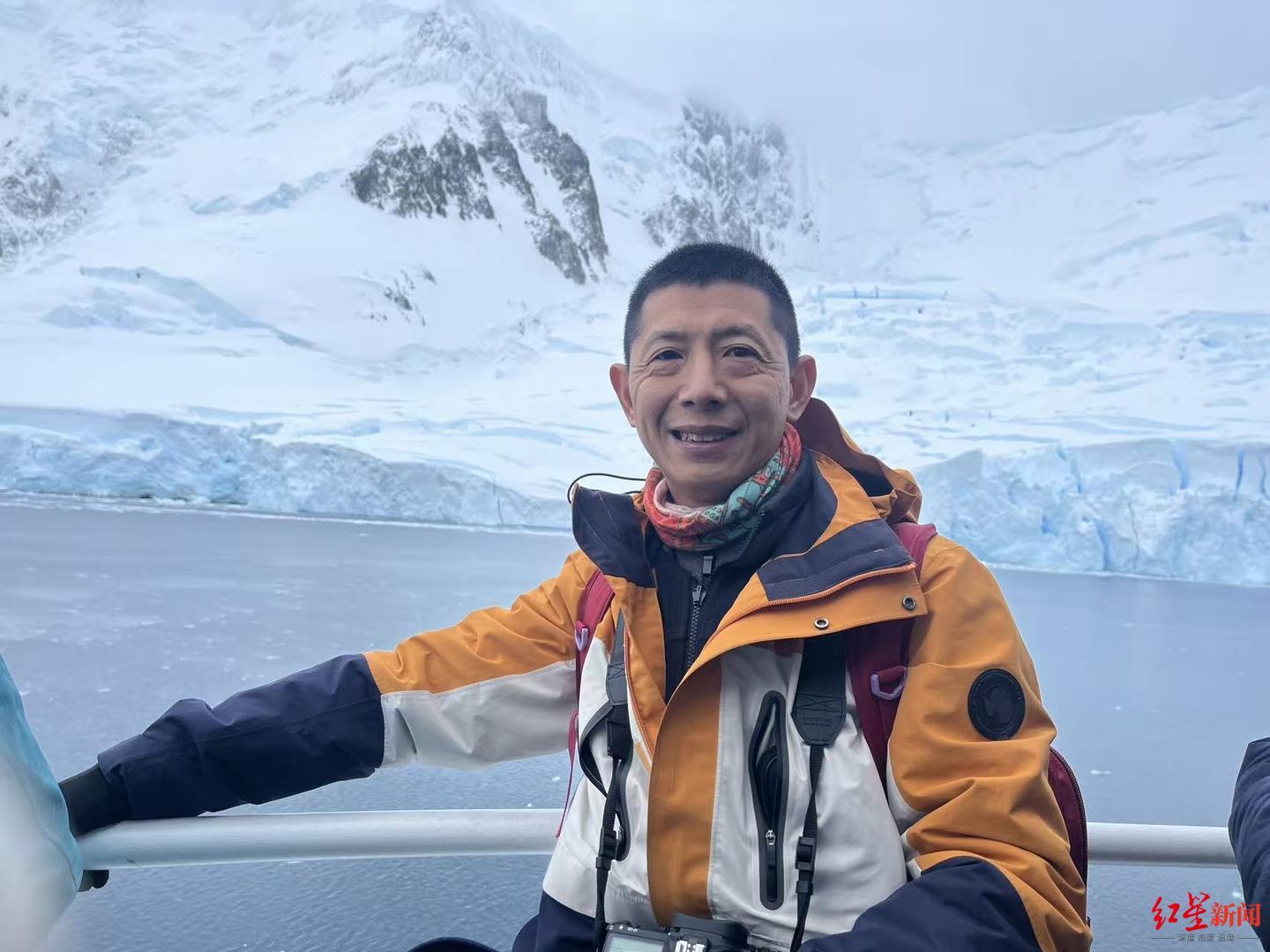 ▲陈勇在宏迪斯号探险邮轮进入南极圈时留影 陈勇供图